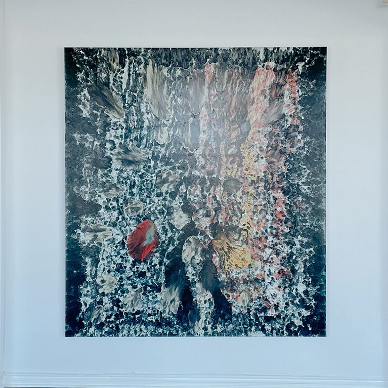The abstract nature of the work allows for personal interpretation, inviting the audience to perceive hidden depths and forms within the chaotic brush strokes.